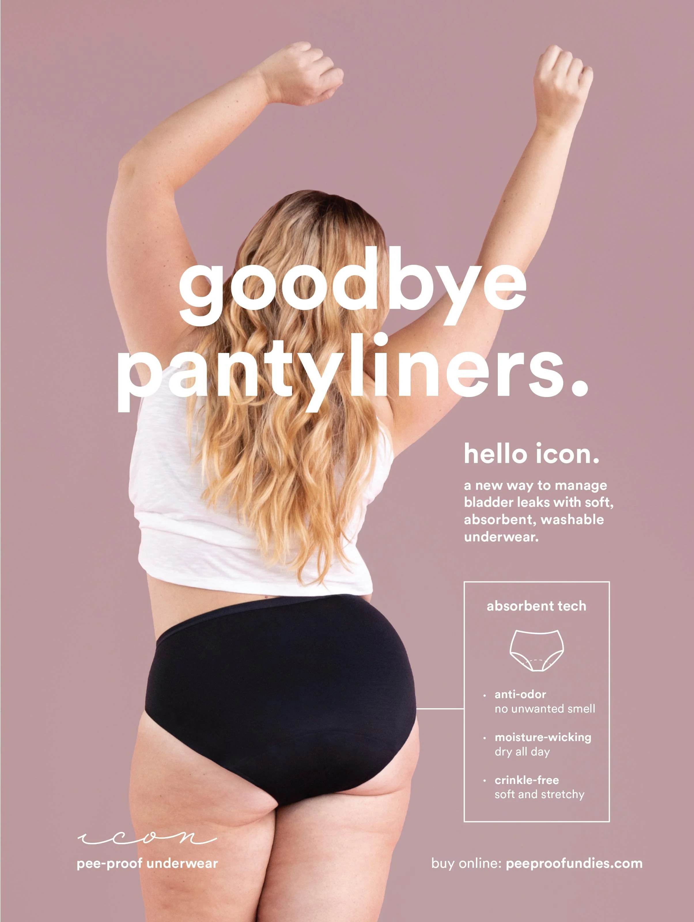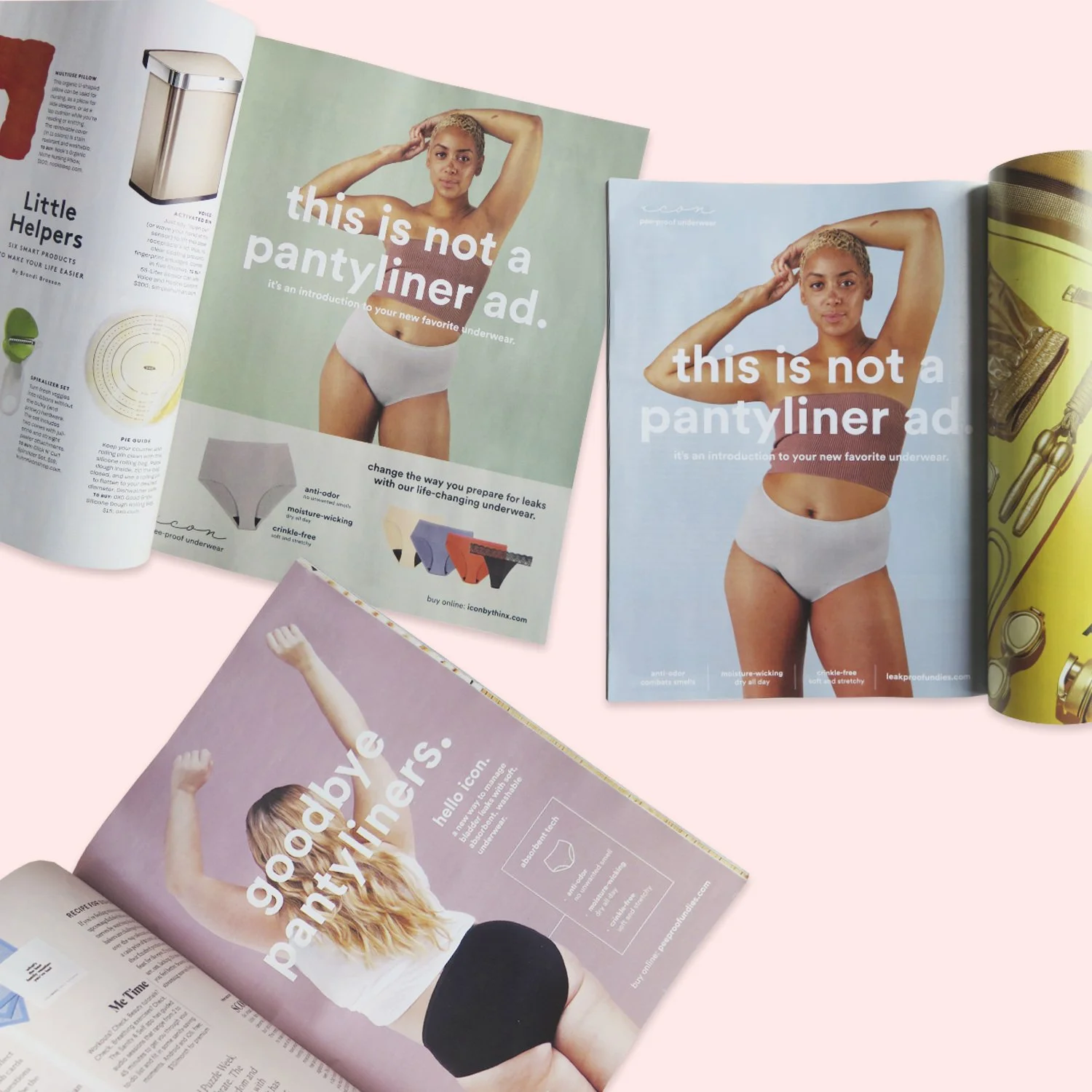 I designed a series of print advertisements for the bladder leak underwear brand, Icon. (Part of Thinx Inc.) The ads were featured in Women’s Health, Real Simple, Family Circle, and Shape magazines.