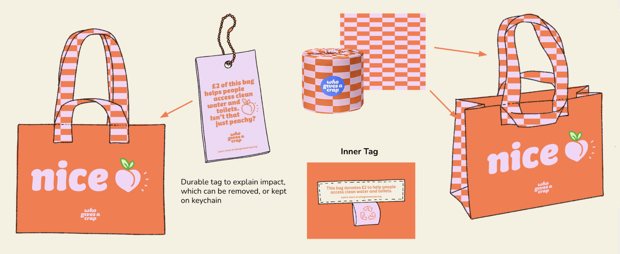The bag was sized to fit a retail carton of our toilet paper sold at Waitrose, and the design matched one of our rolls.